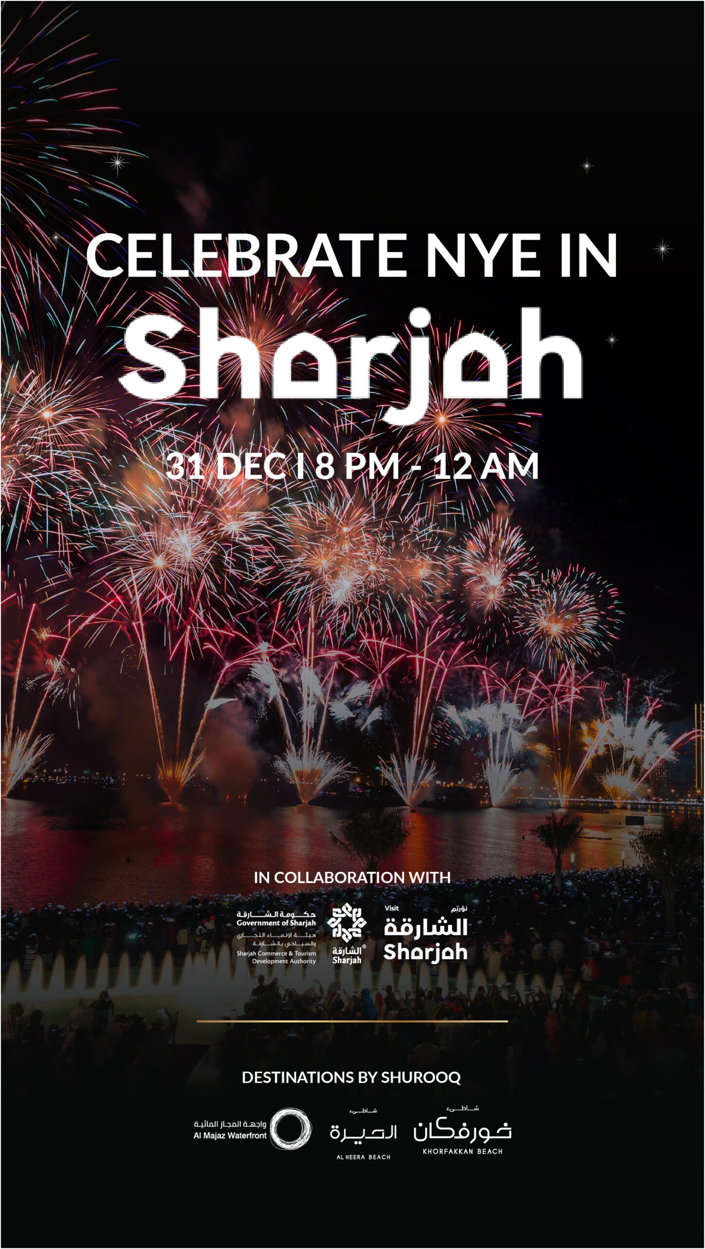 Experience spectacular fireworks lighting up Al Majaz Waterfront, Al Heera Beach, and Khorfakkan Beach as Sharjah welcomes 2026 in breathtaking style. With vibrant celebrations, stunning views, and unforgettable moments, Sharjah is the perfect place for families to ring in the New Year together. ✨👏